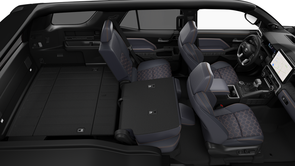 • 60/40 split, heated, reclining and tumble-folding second-row seat with center armrest and cup holders