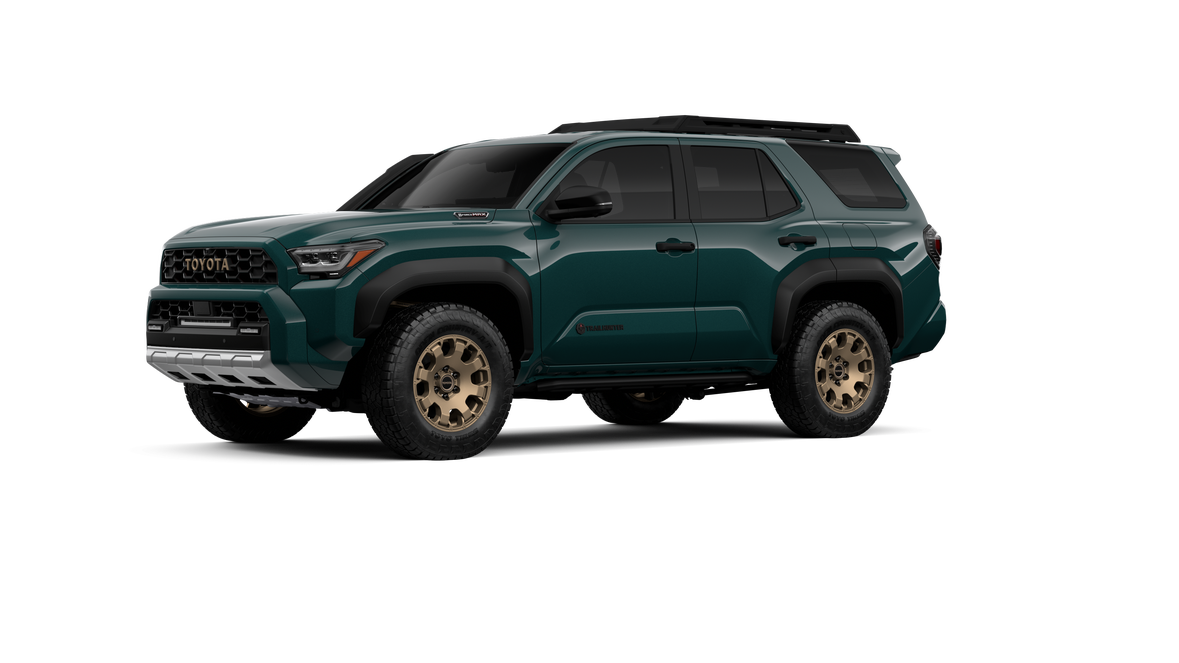 - Black "TOYOTA" heritage grille, door handles and overfenders; color-keyed mirror caps and rear spoiler; black "TRAILHUNTER" and "4RUNNER" badges