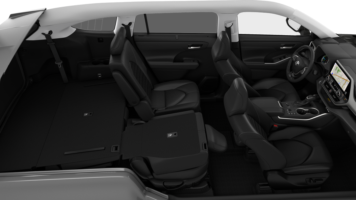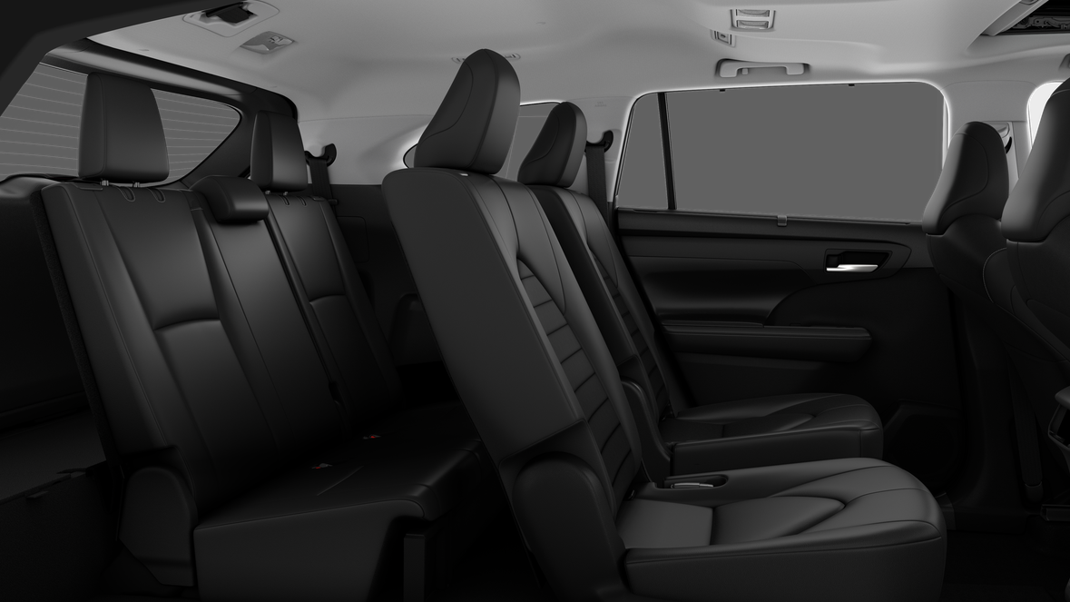 - 7-passenger seating with second-row fold-down captain's chairs and fold-down inboard armrests, adjustable headrests and two cup holders mounted on the floor; and 60/40 split, fold-flat third-row seats with sliding headrests and recline function