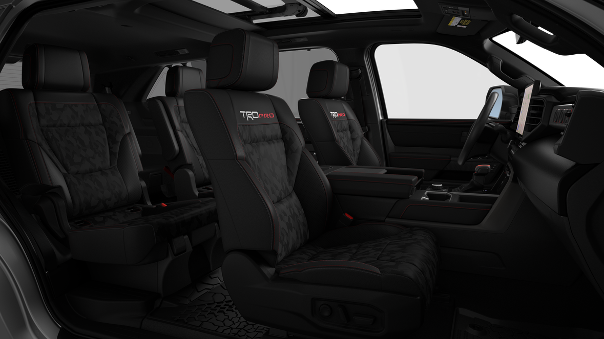 - TRD Pro "TOYOTA" heritage badge on passenger dashboard