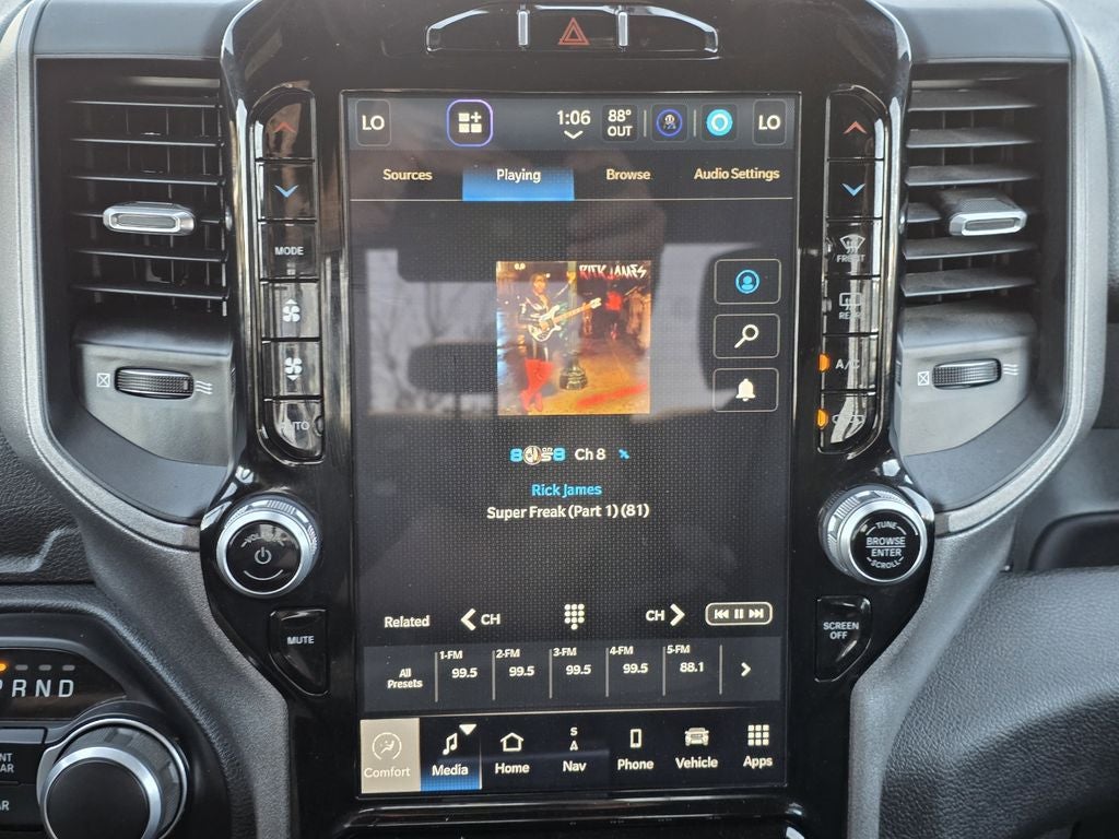 - Radio w/Seek-Scan, Clock, Aux Audio Input Jack, Voice Activation, Radio Data System and Uconnect External Memory Control