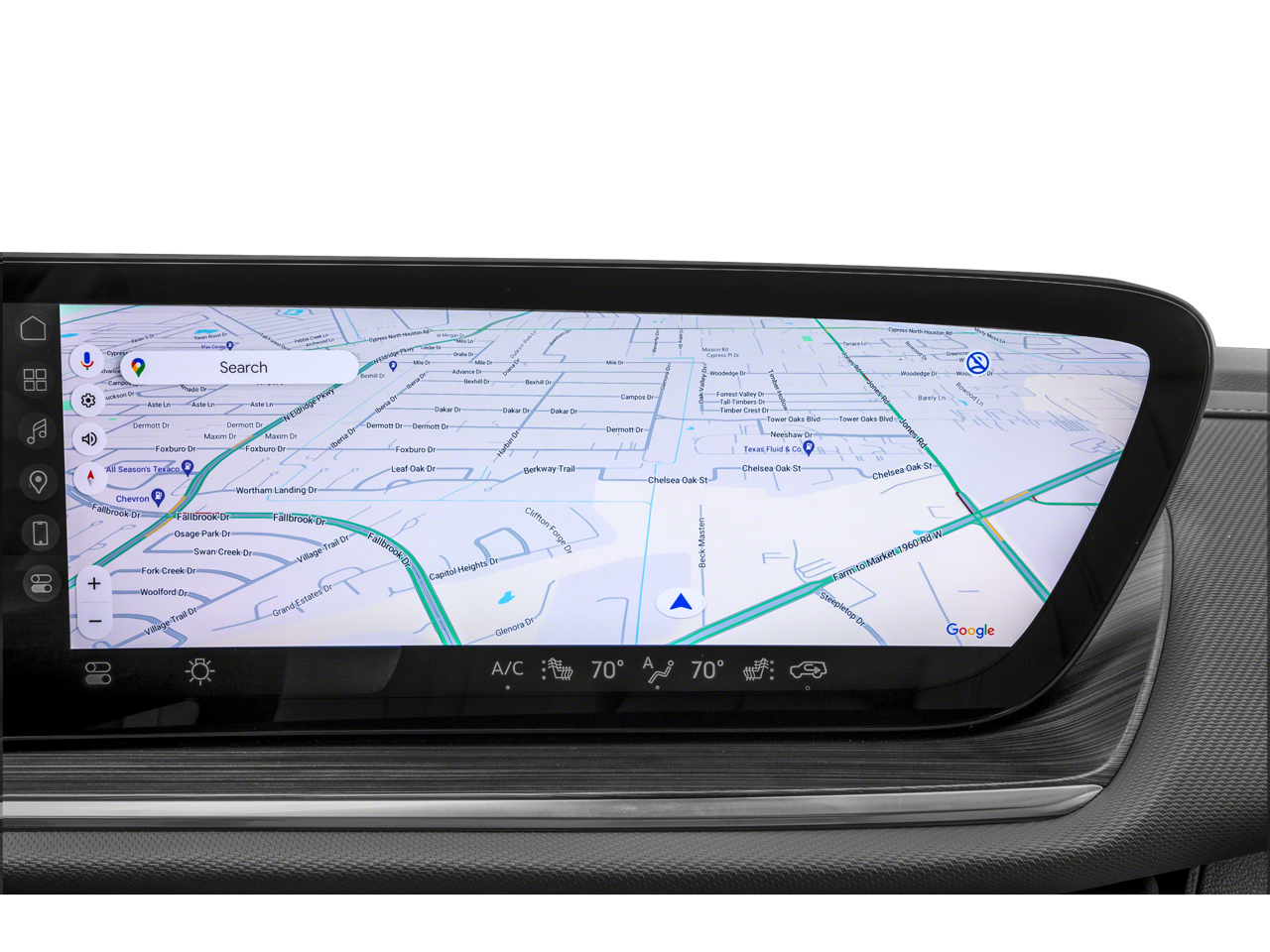 - Infotainment Center customizable ultrawide 30" diagonal screen with Google built-in. Provides navigation capability, connected apps, personalized profiles for each driver's settings, Natural Voice Recognition and Phone Integration for Wireless Apple CarPlay/Wireless Android Auto for compatible phones.