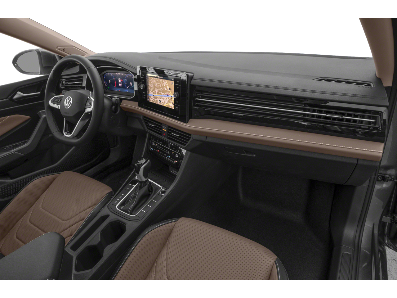 Step inside and you'll be greeted by a wealth of premium features, including a large 8-inch touchscreen navigation system, dual-zone automatic climate control, heated and ventilated front seats, a heated steering wheel, and a panoramic sunroof. The Jetta's spacious interior and ample cargo capacity make it the perfect companion for your daily commute or weekend getaways.